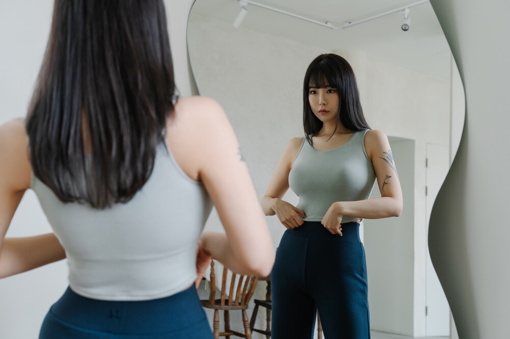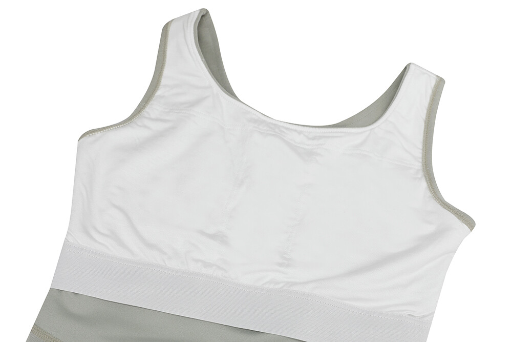 큰 가슴의 볼륨감을 고려해 뒷판보다 앞판을 더 넓게 패턴 설계하여