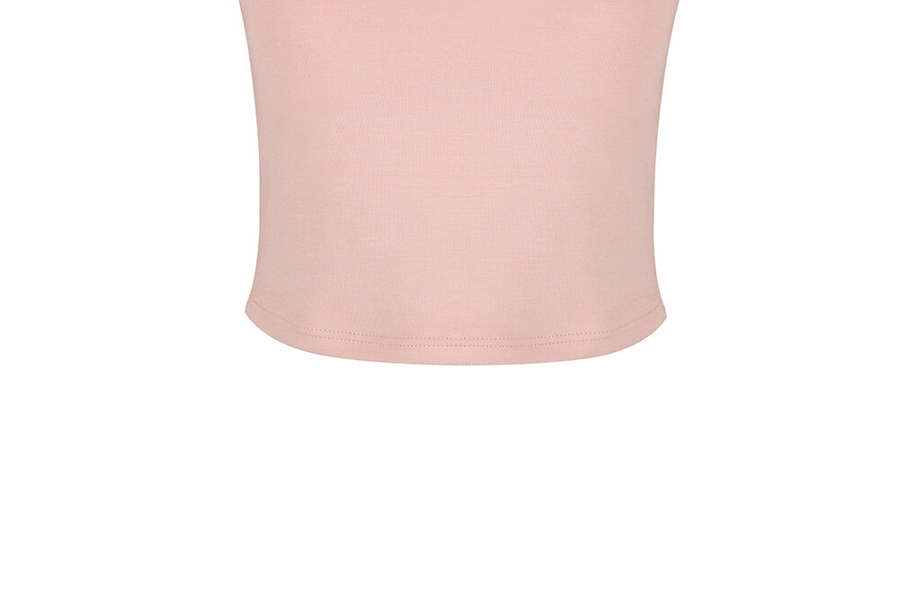 넥라인에 직기밴드를 넣고 보다 견고하게 봉제 (Clean finish) 하여 늘어짐이 없고