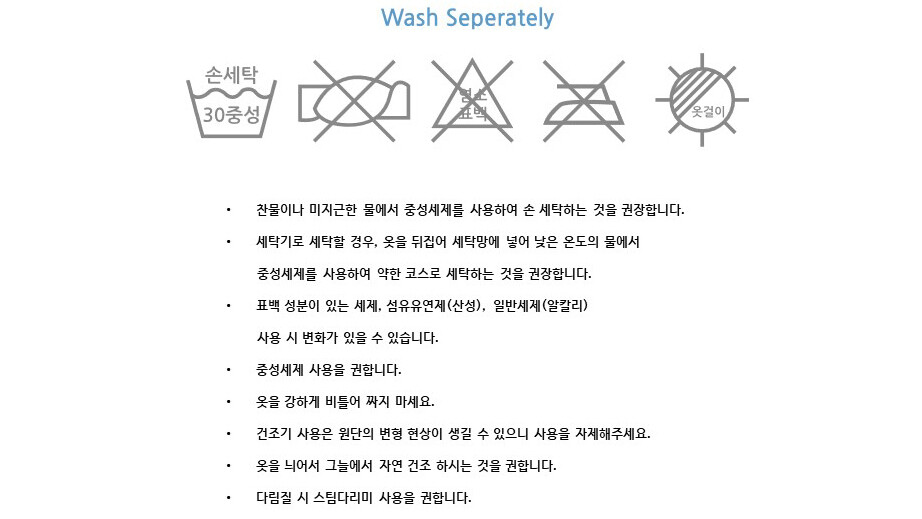 - 생산 과정에서 발생하는 작은 실밥, 초크 자국, 사이즈 오차, 원단 패턴 차이 등은 제품의 하자가 아닙니다.