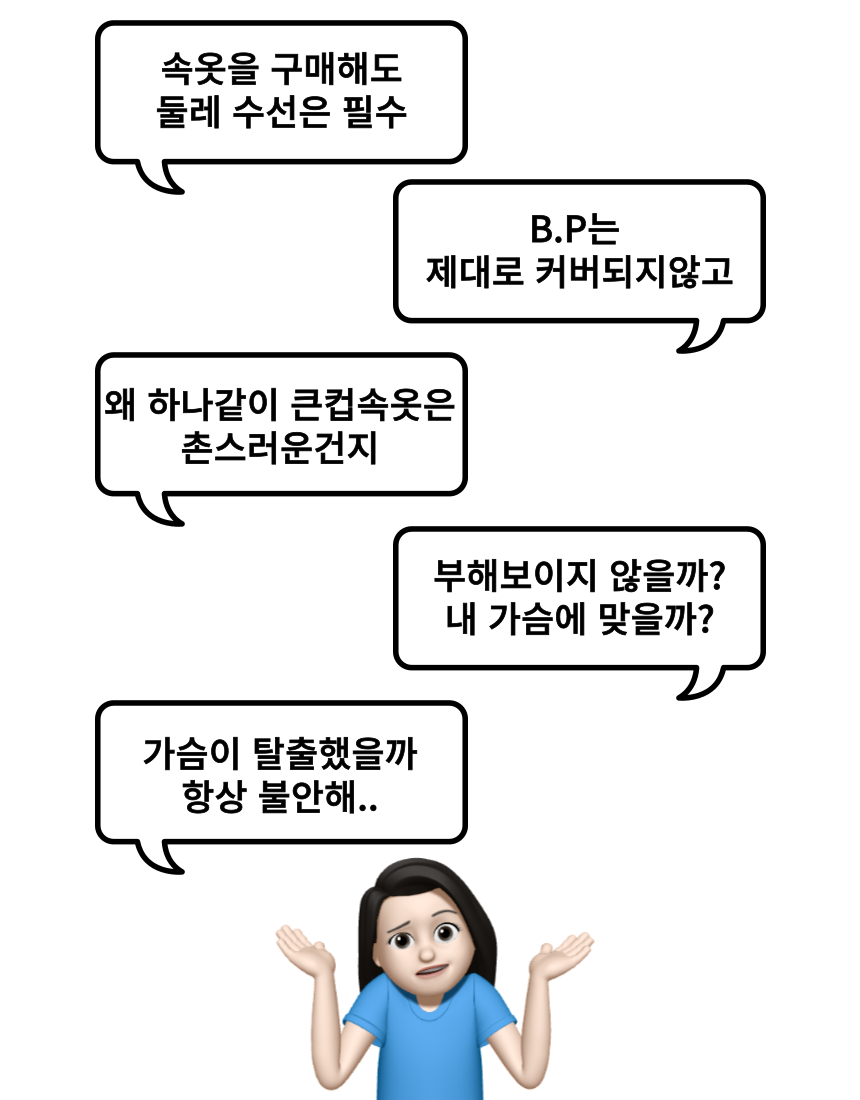 가슴 처짐은 감내하며 착용할 수 밖에 없었죠.
