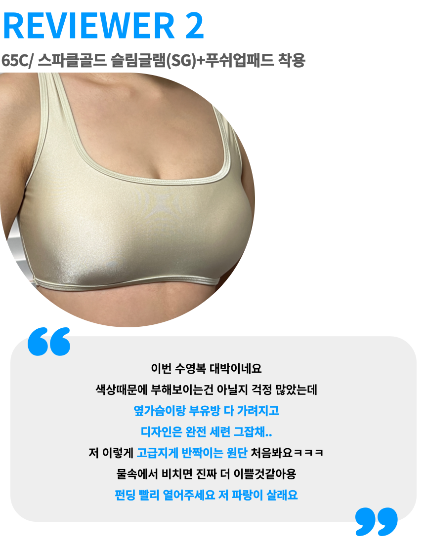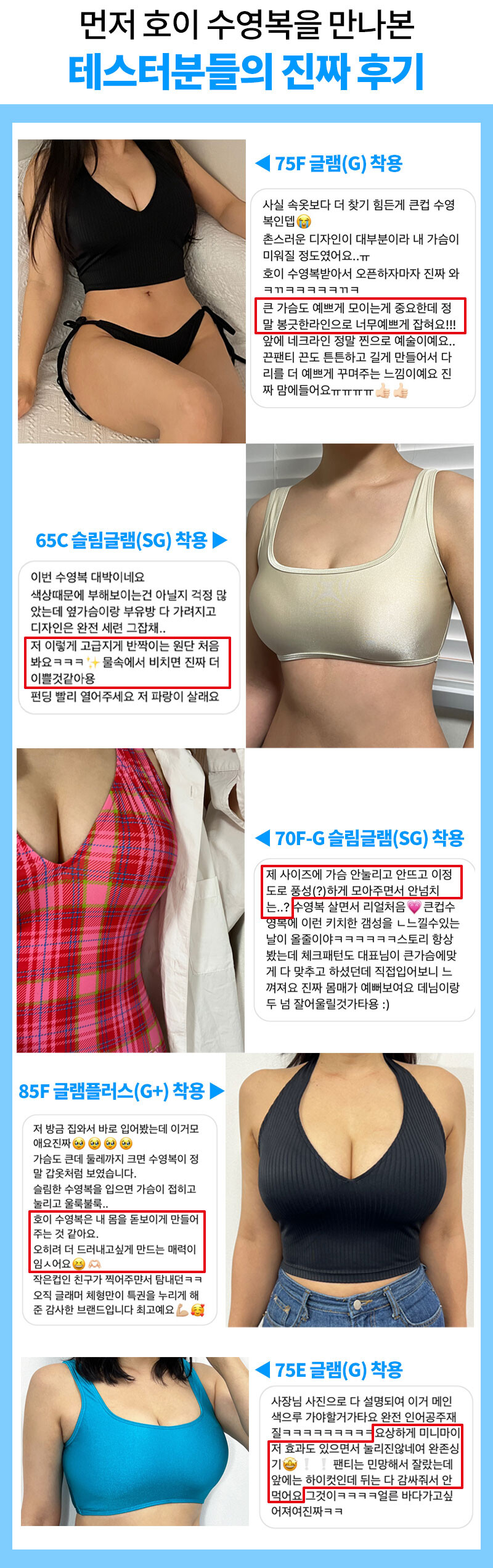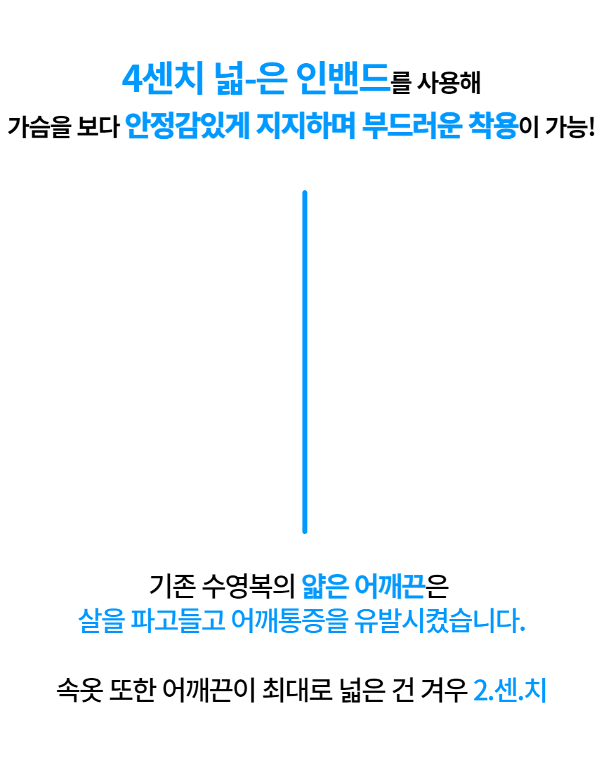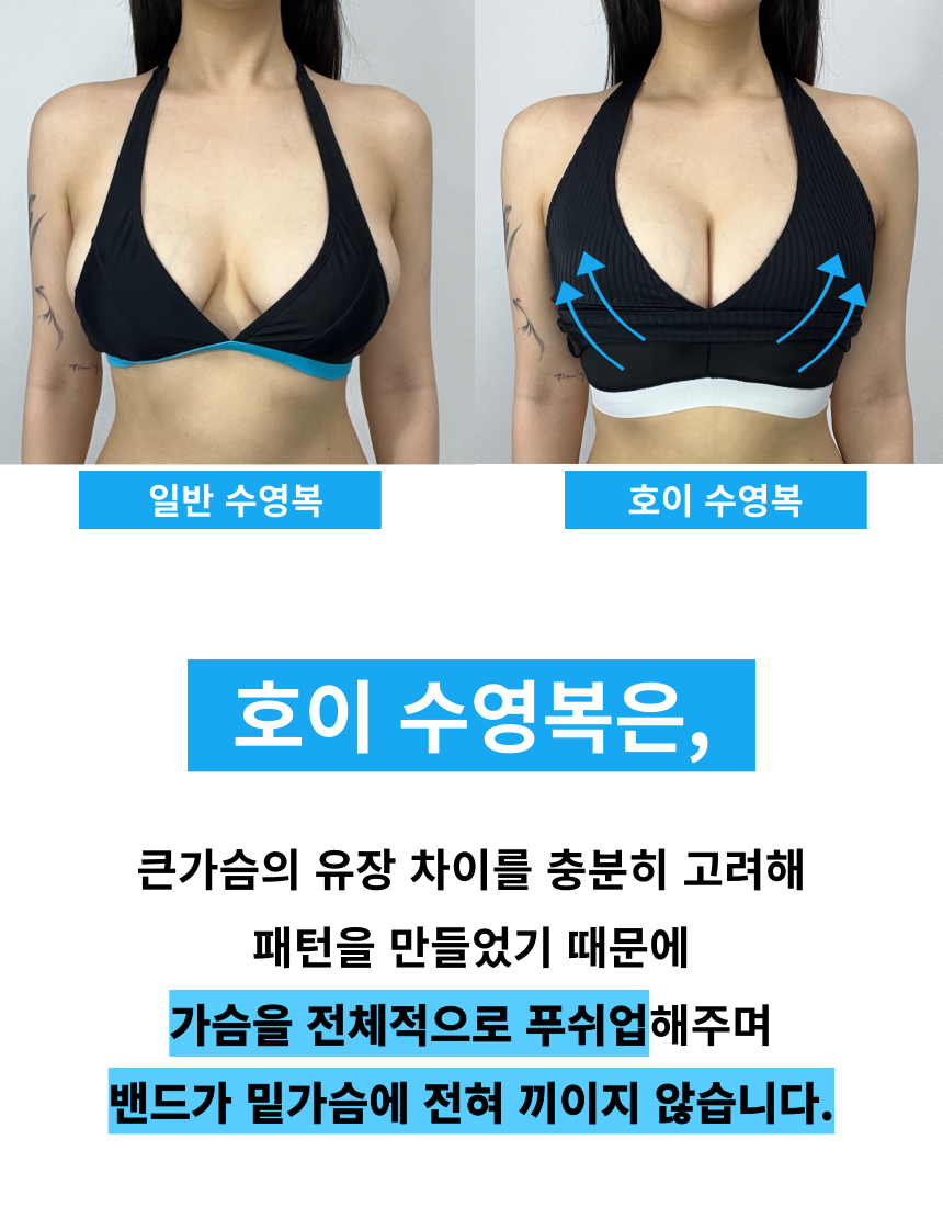 기존 수영복에는 큰 가슴을 지지하기에 턱없이 부족한 얇은 밑밴드로